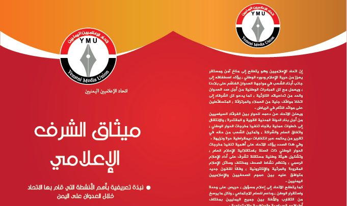 أصدر اتحاد الإعلاميين اليمنيين كتيب ميثاق الشرف الإعلامي والذي يعتبر ضمن المهام والأنشطة الرئيسية لاتحاد الإعلاميين اليمنيين للعام الجاري 2018م .
