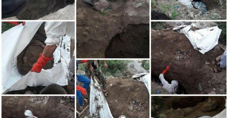 ورجحت مصادر محلية أن تكون الجثث تعود لمقاتلين تابعين لحزب الاصلاح جرى تصفيتهم في السابق.