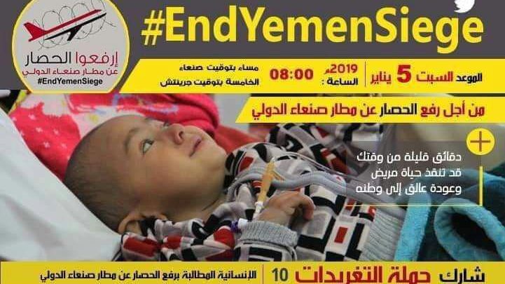 وأوضح أن الوقفة تأتي بعد مرور عدة أشهر من انطلاق الحملة الحقوقية الإلكترونية المطالبة برفع الحصار عن مطار صنعاء وعن اليمن بشكل عام.