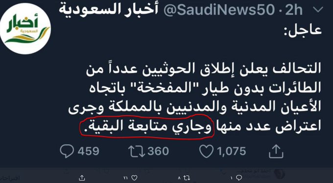 فيما اعلن التحالف كعادته تصديه للطائرات المسيرة في محاولة للتغطية على فشل منظوماته الدفاعية.