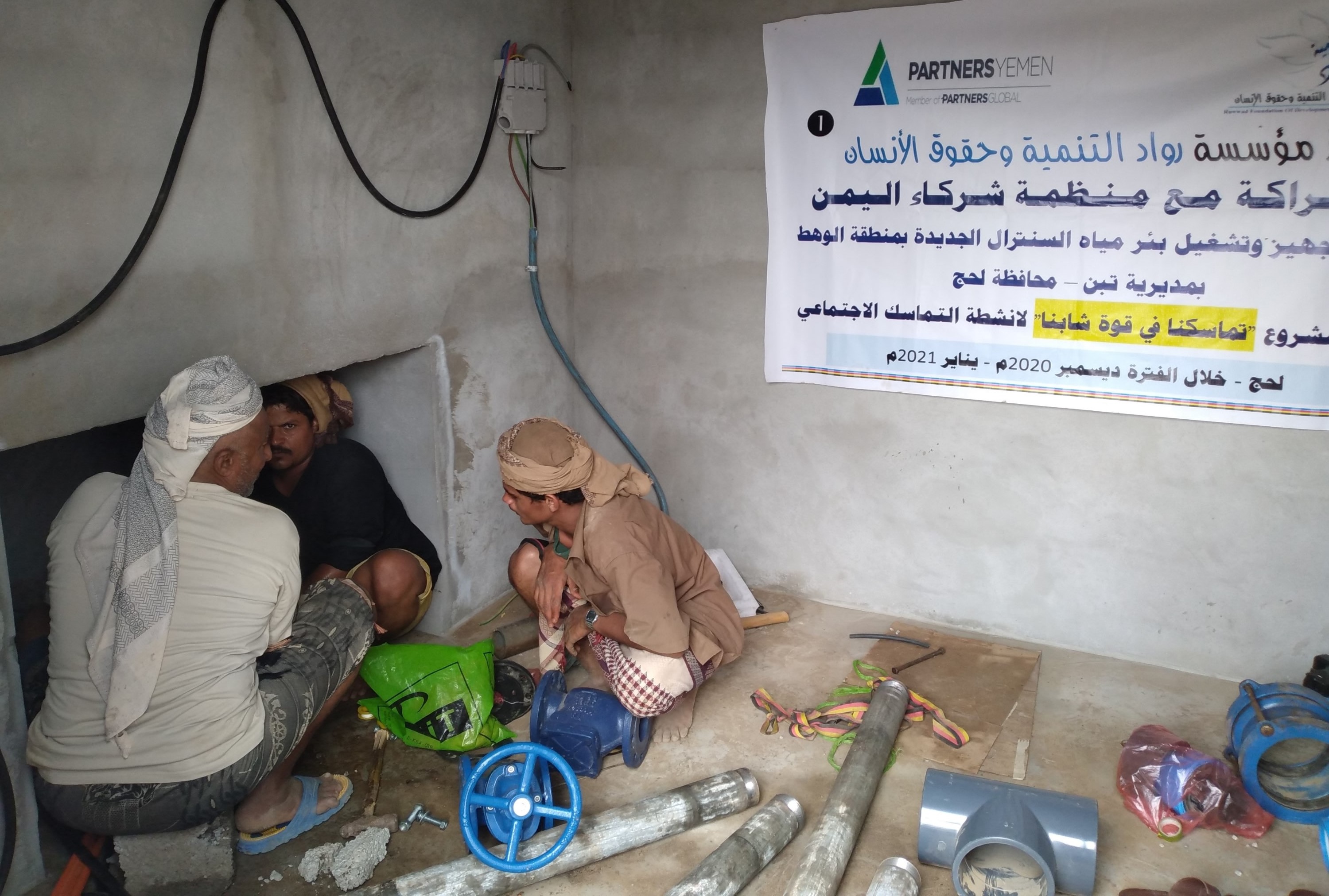 نفذت مؤسسة رواد التنمية وحقوق الإنسان مشروع تجهيز وتشغيل بئر المياه الجديدة في السنترال وربطها بمشروع المياه لمنطقة الوهط بمديرية تبن – محافظة لحج ضمن مشروع “”تماسكنا في قوة شبابنا”” لأنشطة التماسك الاجتماعي وتفعيل دور الشباب في تنفيذ المبادرات والعمل المجتمعي بالشراكة مع منظمة شركاء اليمن الدولية وبمساهمة مجتمعية .