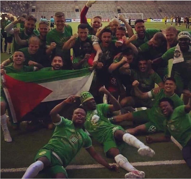 نادي سويدي يرفع العلم الفلسطيني خلال تتويجه بكأس دوري كرة القدم