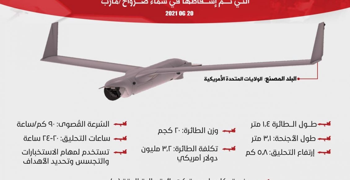 وكان المتحدث القوات المسلحة العميد يحيى سريع قد أعلن اليوم أن الدفاعات الجوية من تمكنت من إسقاط طائرة تجسسية أمريكية من نوع “سكان إيغل Scan Eagle بصاروخ أرض جو أثناء قيامها بأعمال عدائية في أجواء منطقة المشجح بمديرية صرواح.