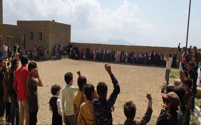 نظمت بمديرية مزهر محافظة ريمة اليوم وقفة طلابية للتنديد باستمرار جرائم العدوان وحصاره على الشعب اليمني.