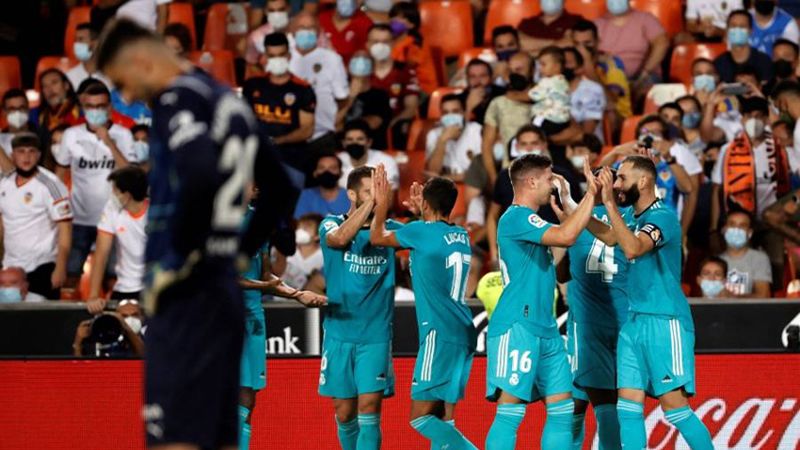 قلب ريال مدريد تأخره أمام مضيفه فالنسيا بهدف لفوز في اللحظات الأخيرة بهدفين ليعتلي الملكي صدارة الدوري الاسباني برصيد 13 نقطة.