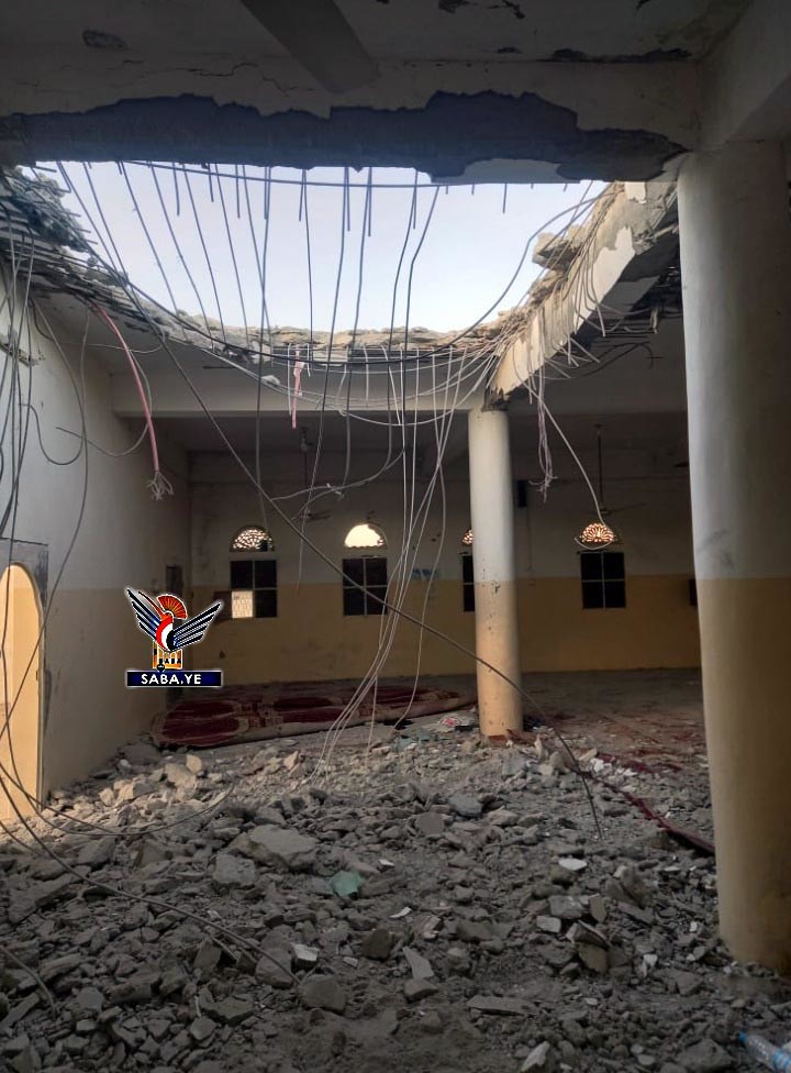 وأوضح مصدر محلي بالمحافظة أن طيران العدوان شن غارة على مسجد الأنصار بمنطقة الحد بمديرية حريب، ما أدى الى إلحاق أضرار كبيرة بالمسجد.