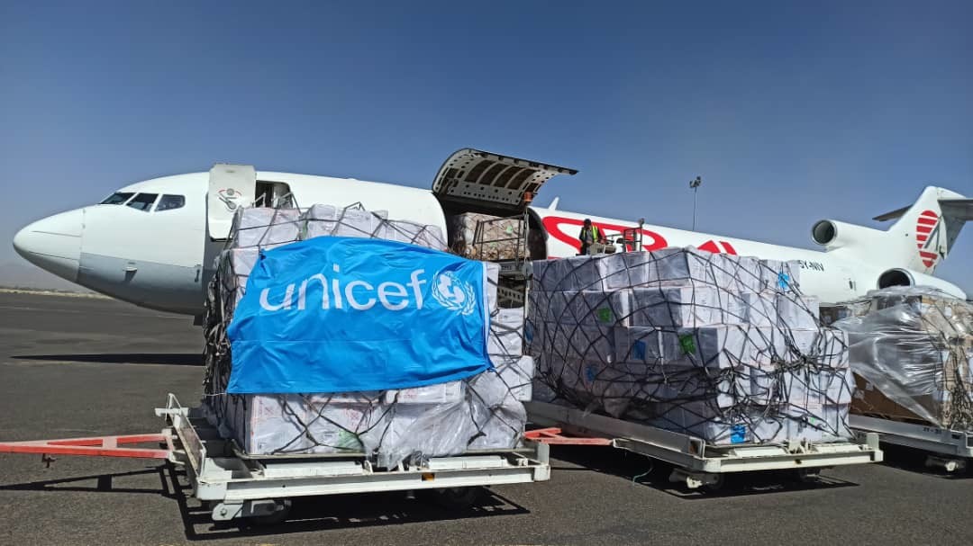 وصلت اليوم إلى مطار صنعاء الدولي، طائرة شحن تابعة لمنظمة الأمم المتحدة للطفولة “اليونيسف” تحمل على متنها لقاحات خاصة بالأطفال دون العام.