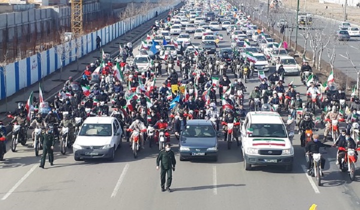 وفي طهران، خرجت المسيرات بالسيارات والدراجات النارية حيث تفرقت المسيرات عبر 12 مساراً لتجتمع كلها في ساحة “آزادي” حيث تقام مراسم الاحتفال في كل عام.
