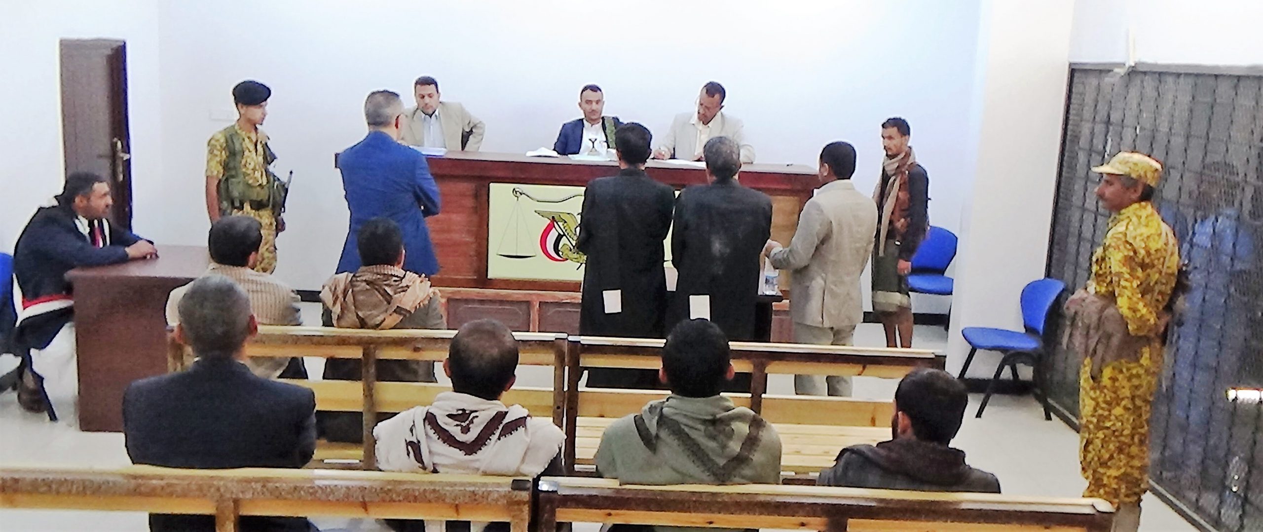 وقضت المحكمة في جلستها برئاسة القاضي ياسر السماوي وبحضور وكيل النيابة القاضي مطهر الجمرة وعضو النيابة عبدالله خليل، بإدانة يحيى حزام صالح الجائفي، وصدام يحيى احمد معوضة، وحازم حزام صالح الجائفي، ورمزي حزام صالح الجائفي وهشام محسن علي المطري، وسلطان على حمود الجائفي، بجريمة قتل المجني عليه لطف محمد على صالح زياد عمدا وعدوانا بالمباشرة والتمالؤ، ومعاقبتهم بالإعدام قصاصا رميا بالرصاص.