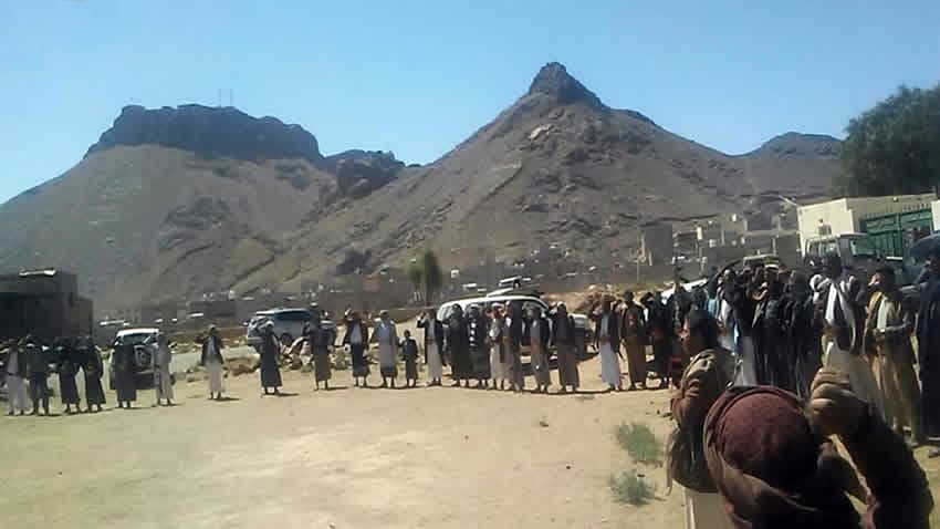 عقب ذلك نظم أبناء جحانة وقفة للتنديد بتصعيد العدوان الأمريكي السعودي الإماراتي وتشديد الحصار ومنع دخول سفن الوقود إلى ميناء الحديدة.