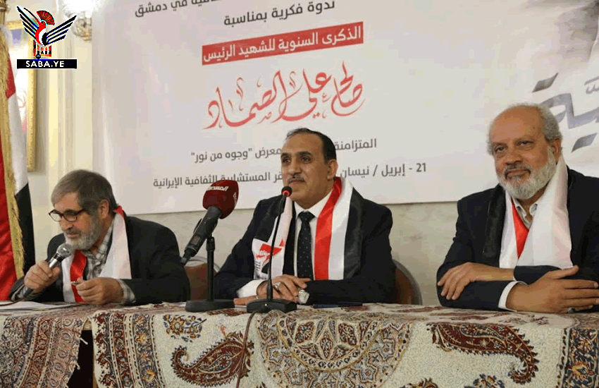 نظمّت سفارة الجمهورية اليمنية في سوريا بالتعاون مع المستشارية الثقافية الإيرانية في دمشق، ندوة فكرية بالذكري السنوية الرابعة لاستشهاد الرئيس صالح الصماد، بالتزامن مع اختتام معرض “وجوه من نور”.
