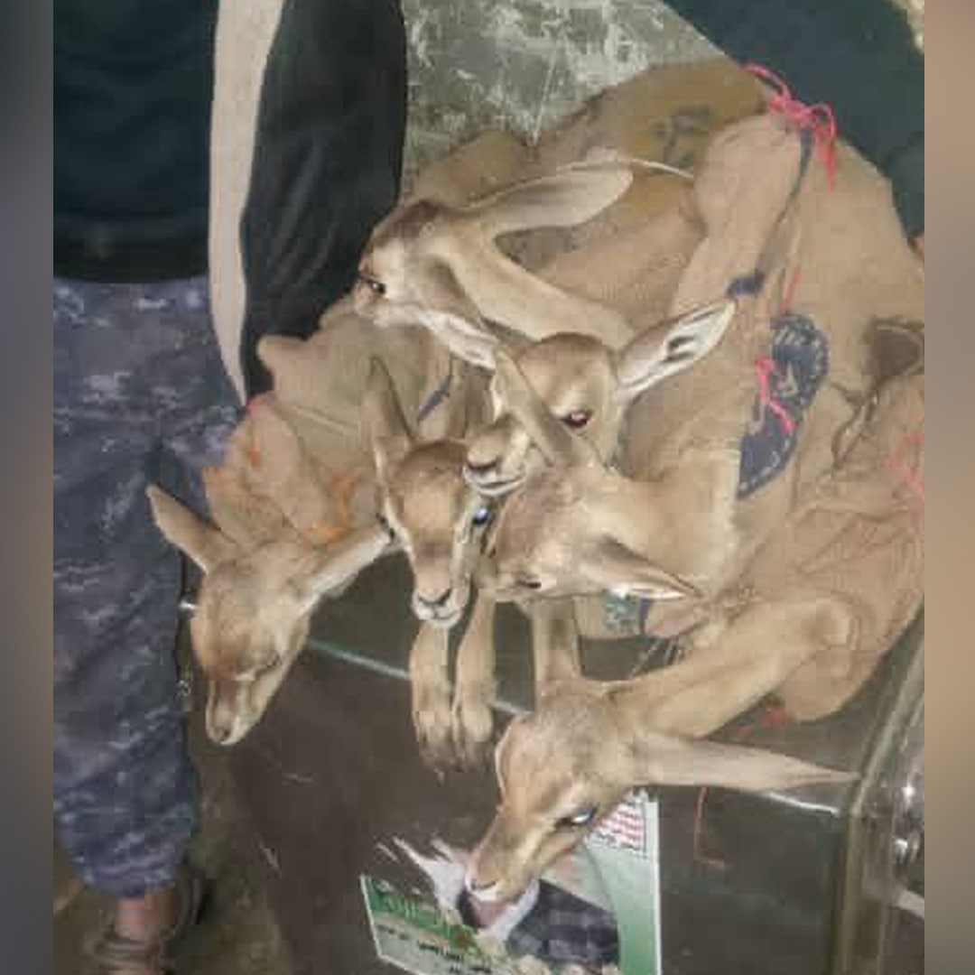 ضبط مكتب الزراعة والري بأمانة العاصمة بالتعاون مع الاجهزة الأمنية، محاولة تهريب ستة غزلان صغار السن في منفذ قحازة .