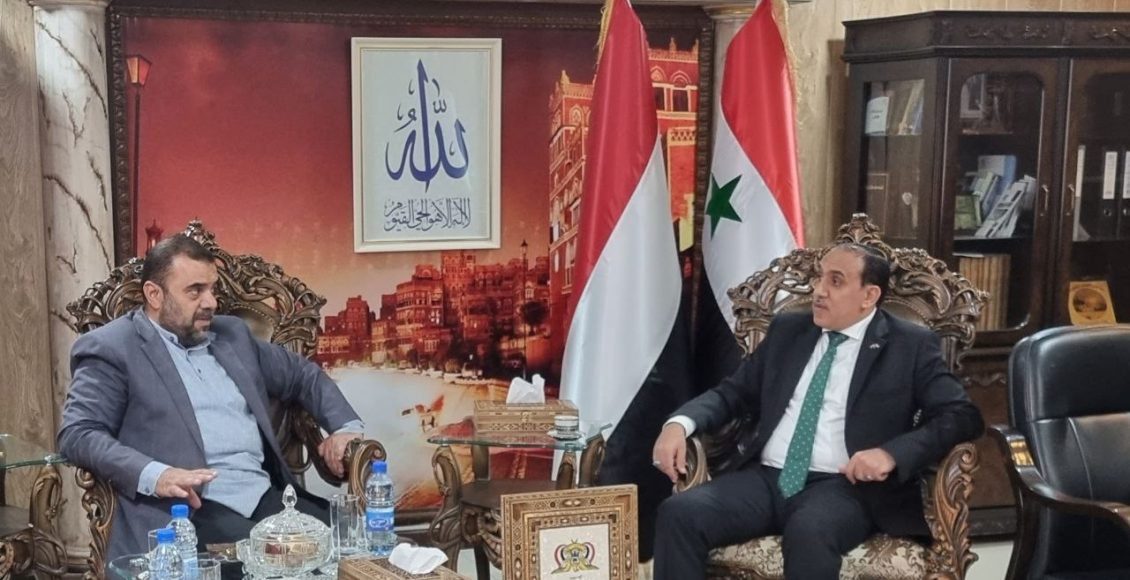 زار وفد من حركة الجهاد الإسلامي في فلسطين الساحة السورية السفير اليمني عبد الله علي صبري في مقر السفارة اليمنية في العاصمة السورية دمشق.