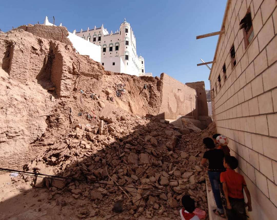 أظهرت مشاهد وصور انهيار جزء من سور قصر السلطان الكثيري في مدينة سيئون بمحافظة حضرموت والذي يُعدُ من أقدم وأكبر المعالم الطينية في العالم.