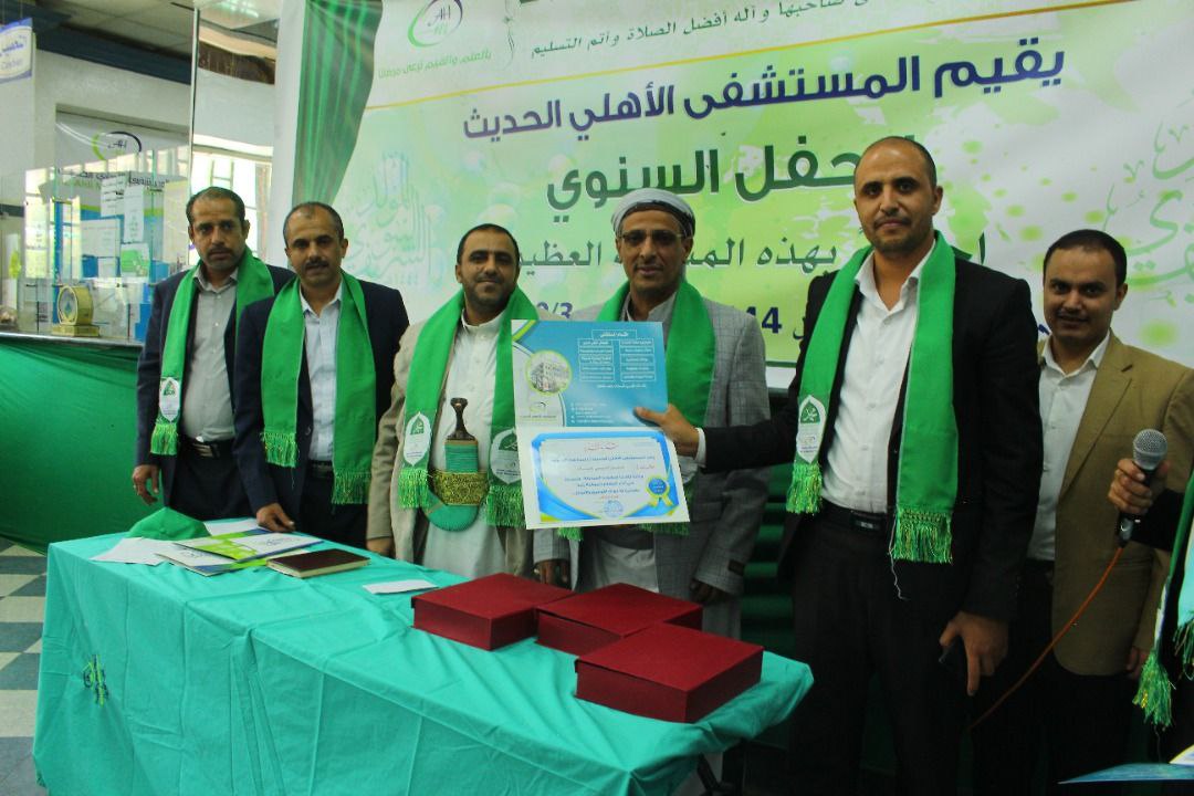 وفي الحفل الذي بدء بآيات من الذكر الحكيم والسلام الجمهوري أكد مدير عام المستشفى الاهلي محمد الروضي على أهمية الاحتفاء بالذكرى النبوية الشريفة .. مشيراً إلى أن المولد النبوي في معناه العميق هو الميلاد الجديد للحياة والاحياء اما معناه المؤسسي فهو ميلاد المؤسسات بتعزيز الافضل من الخدمات الطبية وتجويد الجيد وصولا الى المثالية والجودة .