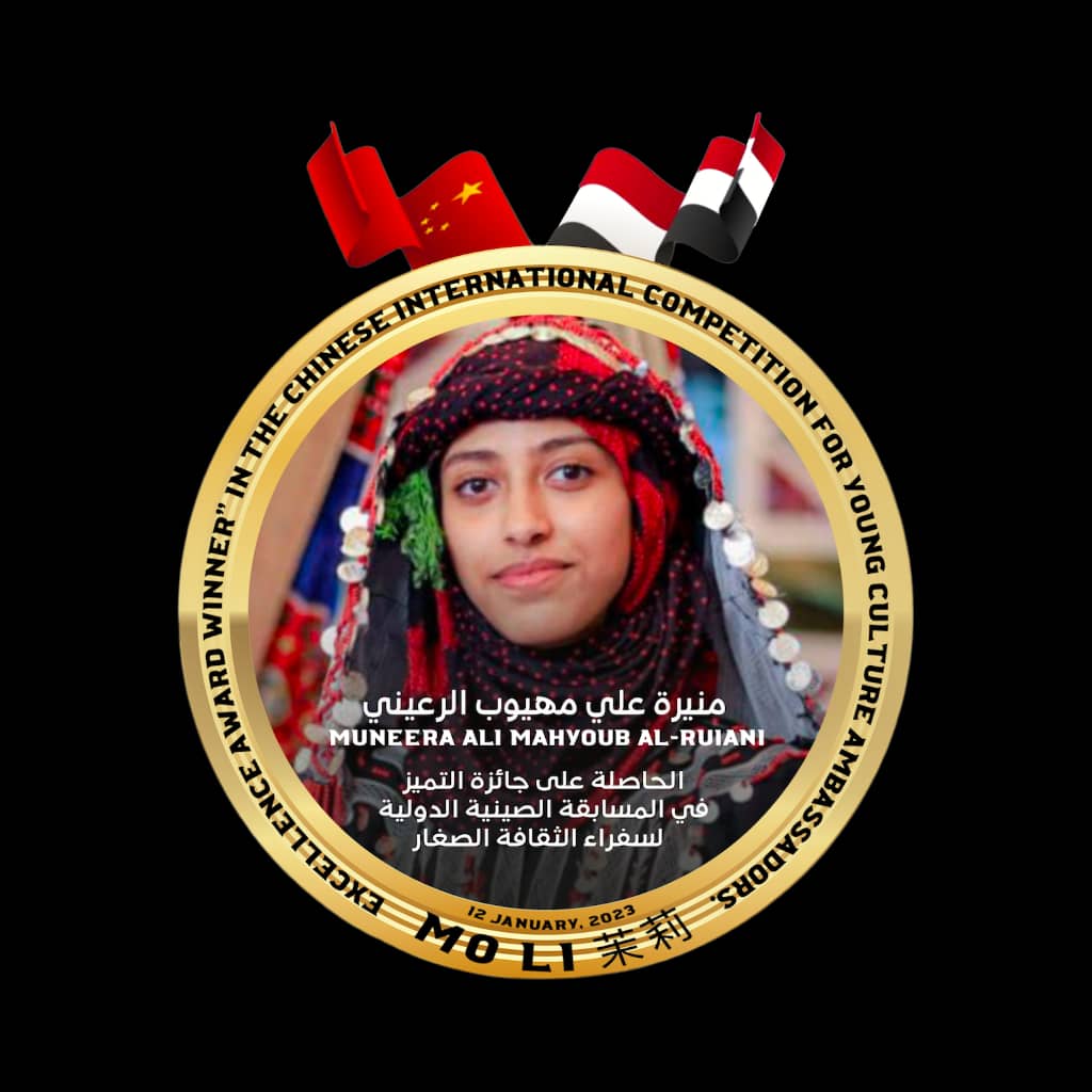 فازت الطفلة اليمنية منيرة علي الرعيني عضو برلمان شباب البريكس اليمن ، بجائزة التميز الصينية الدولية للعام 2022م.