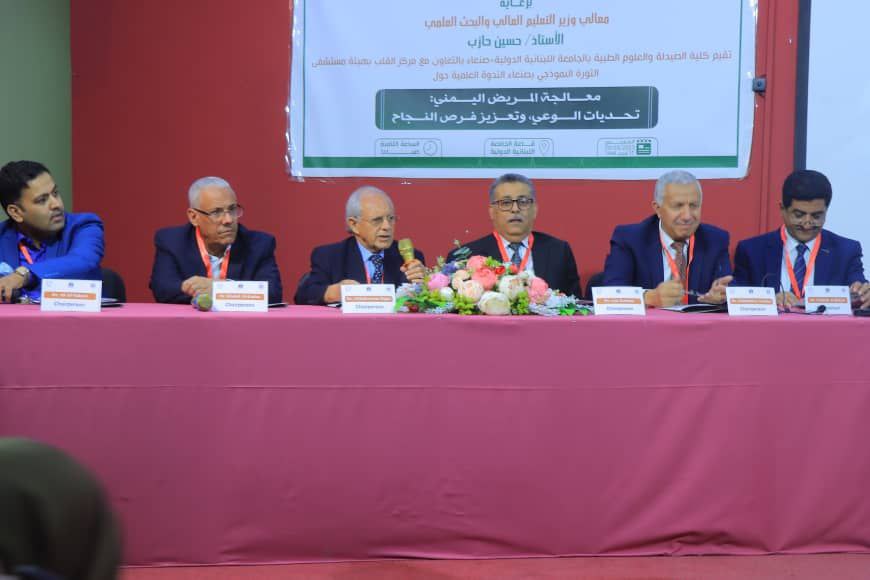 عقدت الجامعة اللبنانية الدولية- كلية الصيدلة والعلوم الطبية بالتعاون مع مركز القلب بهيئة مستشفى الثورة النموذجي بصنعاء ندوة علمية بعنوان (معالجة المريض اليمني: تحديات الوعي وتعزيز فرص النجاح ) وذلك برعاية كريمة من وزارة التعليم العالي والبحث العلمي.