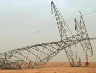 وذكر المصدر ان أبراج الكهرباء التي تبعد عن المحطة 179 كليو تعرضت لاعتداء تخريبي اسفر عن خروج الدائرة الأولى عن الخدمة .