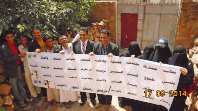عقد بمقر منظمة المقصد اليمني لحقوق الإنسان اليوم الأربعاء 17/9/2014م جلسة حوارية حول مشاركة المجتمع في صياغة الدستور عموما?ٍ والمرأة على وجه الخصوص أقامها فريق رسل الحوار بمحافظة المحويت نوقشت فيها صياغة الدستور والفدرالية وتوزيع الثروة وبناء الجيش والأمن والحقوق والحريات والمرأة والشباب والإعلام وآليات تنفيذ مخرجات الحوار والوصول لدستور ديمقراطي شامل يلبي طموح كل اليمنيين ? كما تم التطرق إلى الصعوبات والانقسام الذي يعيشه اليمن ? وطالب المشاركون في الحلقة النقاشية إلى عقد ورش عمل أخرى لشرح الدستور وتوزيع الثروة وبناء الجيش والأمن والحقوق والحريات والمرأة والشباب .
