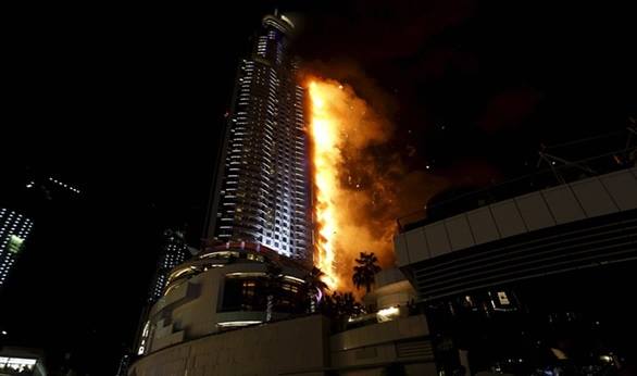 شب حريق هائل ، مساء اليوم في أحد الفنادق المخصصة للإقامة السكنية في إمارة دبي بدولة الإمارات التهم عشرين طابقا على الأقل.