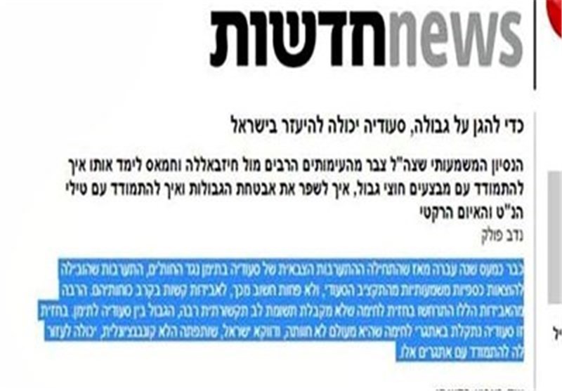 وأشارت الصحیفة إلى أن الحوثیین نجحوا خلال الأشهر الماضیة فی تنفیذ مداهمات داخل الأراضی السعودیة، وأسر جنود سعودیین، وإصابة عشرات الدبابات السعودیة، من إنتاج أمریکی، لاستخدامهم صواریخ حدیثة مضادة للدبابات، وهى الصواریخ التى استطاع الجیش «الإسرائیلی» اعتراضها فی الجبهة الشمالیة قُبالة حزب الله وفی قطاع غزة قُبالة حماس .