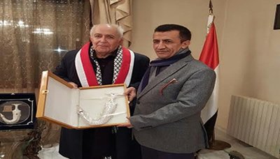 وفي ختام اللقاء كرم سفير اليمن لدى سوريا الدكتور بكار تقديراً وعرفاناً بجهوده تجاه الشعب اليمني ومظلوميته.