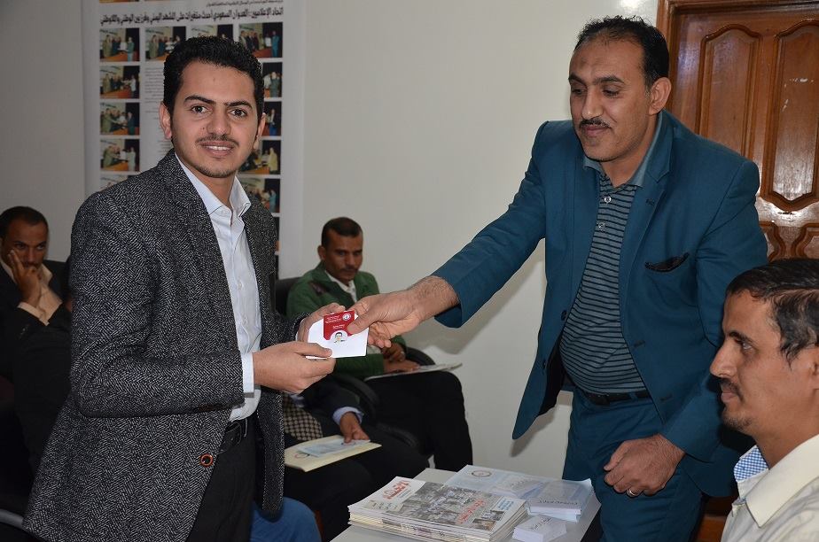 اتحاد الإعلاميين اليمنيين يوزيع الدفعة الاولى من بطاقات العضوية
