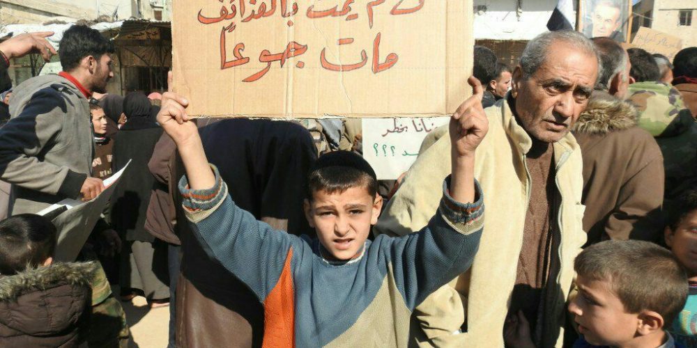 أهالي الفوعة وكفريا في ريف ادلب السوري يحتجون نتيجة الحصار