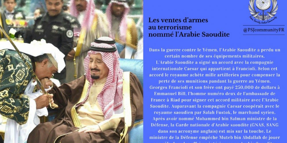 وأضافت الصفحة أن جورجس فرانسيولي وأخوه جيم أرشيا الرجل الثاني في سفارة فرنسا لدى السعودية إيمانويل بيل مبلغا بقيمة 250 ألف دولار حتى يتم توقيع صفقة شراء القذائف، مضيفاً أن التاجر السوري صالح فستوق خال لمتعب بن عبدالله يقوم بدور تأمين صفقات شركة قيصرالدولية مع المملكة العربية السعودية من قبل.