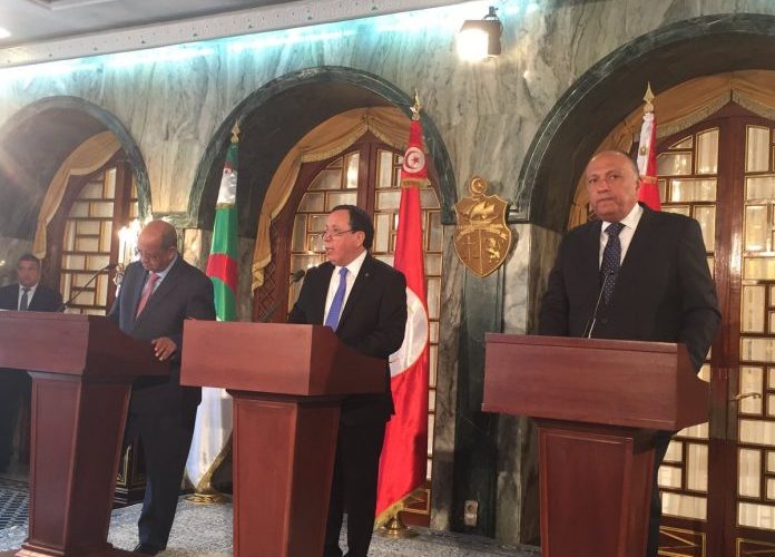 وقّع وزراء خارجية تونس والجزائر ومصر بحضور الرئيس التونسي الباجي قائد السبسي في قصر قرطاج، على “إعلان تونس” الوزاري لدعم التسوية السياسية الشاملة في ليبيا.