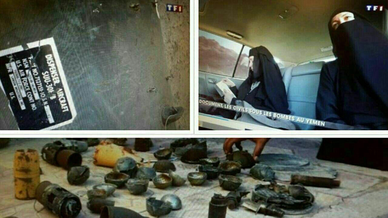 بثت وسائل إعلامية فرنسية تقريراً متلفزاً أعدته صحفيتان فرنسيتان كشفتا فيه عن إن القنابل التي تسقطها السعودية على رؤوس الأبرياء في اليمن وخاصة العنقودية مصنعة في الولايات المتحدة.