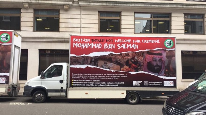الزيارة المتوقعة لولي العهد السعودي محمد بن سلمان للمملكة المتحدة التي يراد لها أن تسهم في تحسين العلاقات السعودية البريطاني (كما صرح بذلك وزير الخارجية عادل الجبير) تجري على وقع الأصوات التي تعالت في مختلف شوارع العاصمة البريطانية لندن من جديد احتجاجاً على الانتهاكات الإنسانية التي ترتكبها السعودية في اليمن.