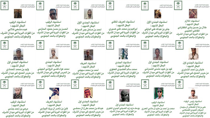 ورصدت مصادر اعلامية أعداد وأسماء القتلى والجرحى من وسائل الإعلام السعودية الرسمية وغير الرسمية، فيما لم تعلن وكالة الأنباء السعودية الرسمية سوى عن 30 قتيلاً من جيشها في المعارك الحدودية.