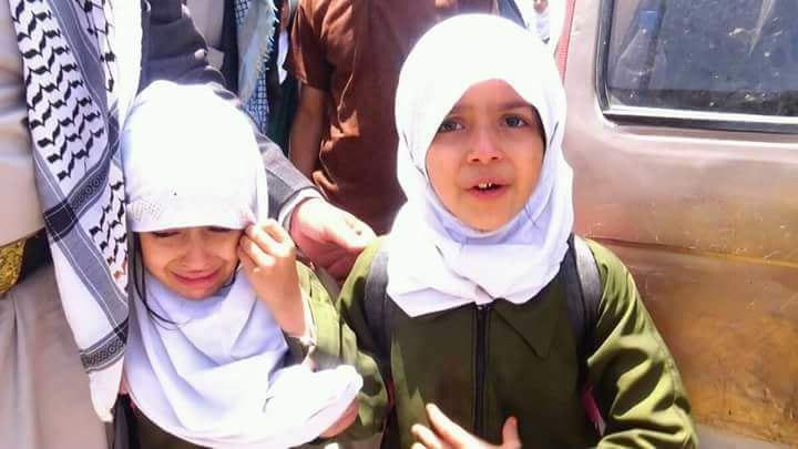 وأظهرت الصور طالبات وزهرات مدرسة التوحيد المجاورة للمكان الذي استهدفه طيران العدوان الأمريكي السعودي ، وقد أصابتهن حالة شديدة من الخوف والذعر.