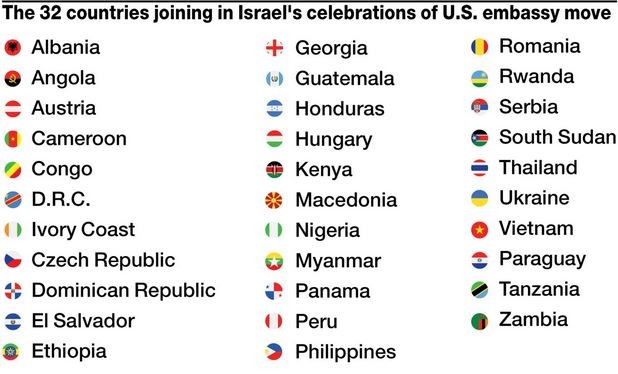 33 دولة تعتزم حضور مراسم افتتاح السفارة الامريكية في القدس المحتلة