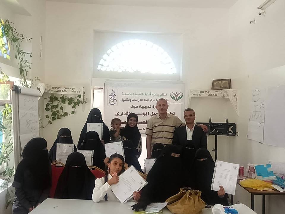وقال: نشكر جمعية قطوف لمبادرتها بتنظيم دورة لتدريب فريقها الإداري كما نشكر مركز أبجد للدراسات والتنمية لإسهامه الفاعل في تدريب منظمات المجتمع المدني في محافظة ذمار وتقديم الخدمات الاستشارية لهذه المنظمات.