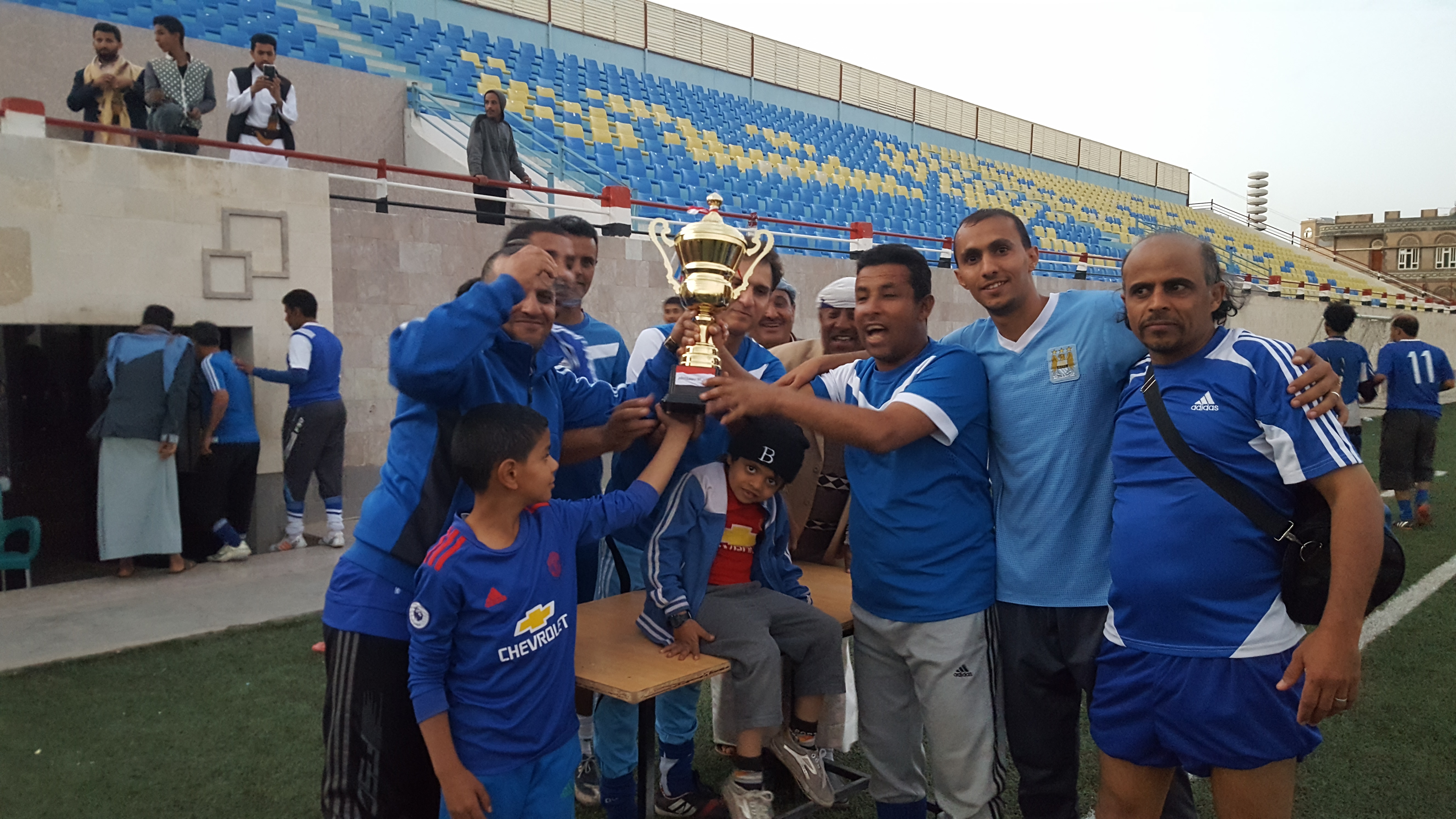 وعقب نهاية المباراة قام الكابتن احمد الشرفي ومعه امين فرع اتحاد الكرة بالامانة بتسليم الكاس للفريق الفائز قداما الوحدة
