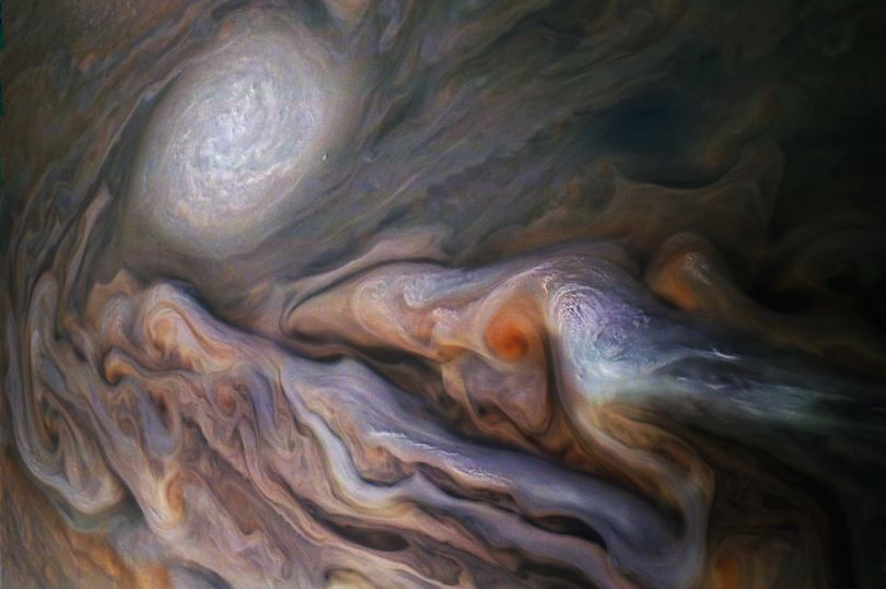 نشرت وكالة ناسا صورة للعاصفة الضخمة على سطح كوكب المشتري، قد تظن للوهلة الأولى بأنها لوحة سريالية.