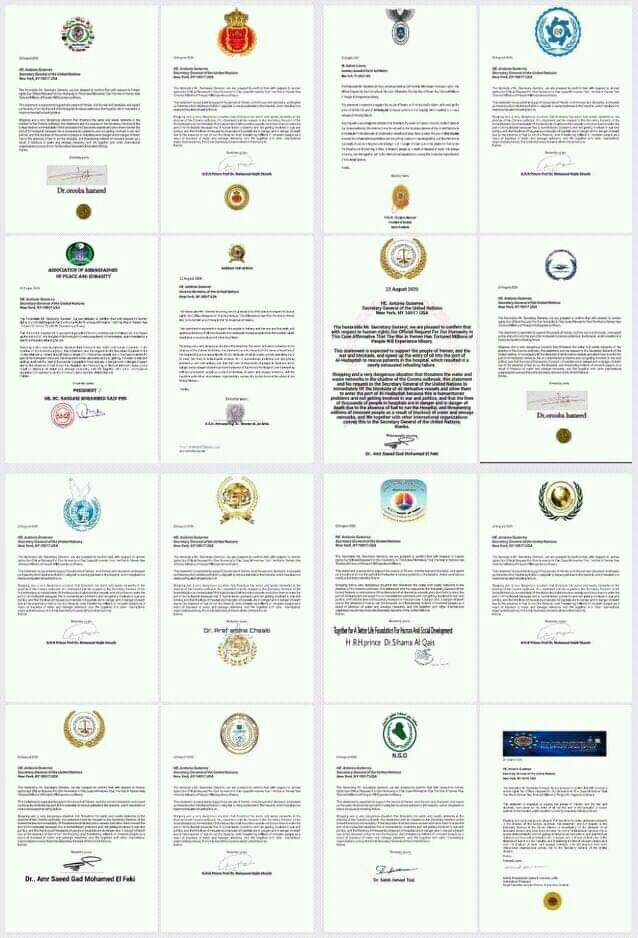 مع كل الاحترام تطالب منظمات المجتمع المدني والإتحادات الدولية الامم المتحدة والاتحاد الأوروبي والدول والمنظمات التدخل السريع والعاجل لإنقاذ الشعب اليمني، وتطالب بقرار عاجل يقر الآتي:-