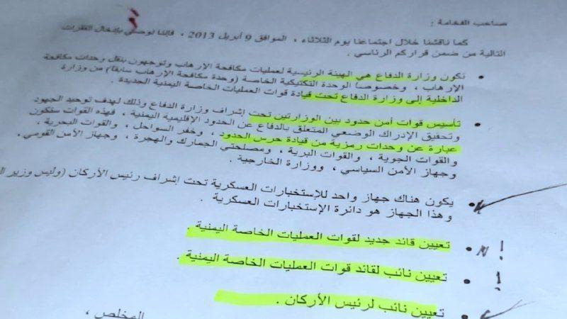 وحسب ما ورد في الوثائق فإن السفارة الأمريكية قبل الثورة وجهت بسرعة إصدار قرارات رئاسية بعدد من القادة العسكريين في مناصب مختلفة بينها قائد جديد لقوات العمليات الخاصة، ونائب له، ونائب لرئيس هيئة الأركان العامة.