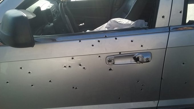 وأظهرت صورٌ تداولها مغرّدون سيارة الشاعر العماني، وقد تعرّضت لإطلاق نار كثيف .