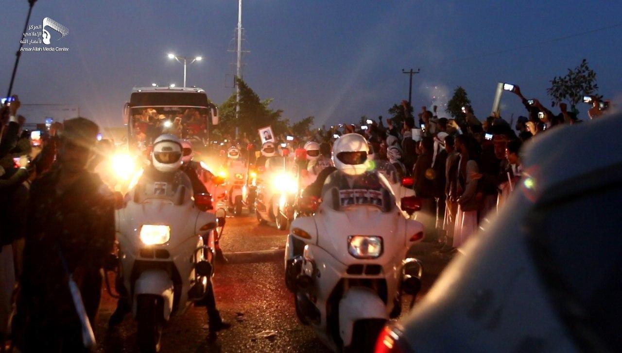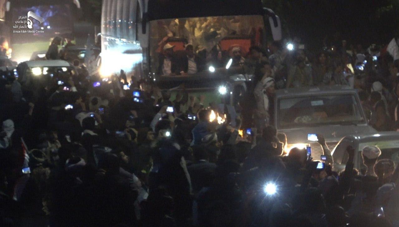 شهدت العاصمة صنعاء، مساء الخميس، استقبالا شعبيا كبيرا لموكب الأسرى المحررين.