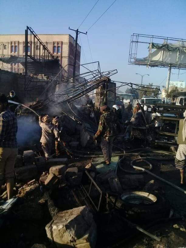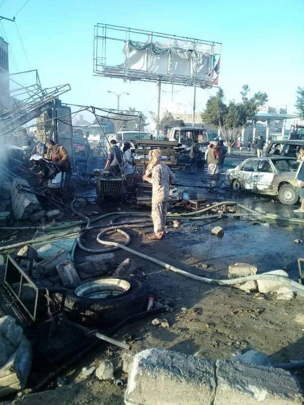 وأوضح مدير إدارة الدفاع المدني بمحافظة البيضاء العقيد الركن عزيز محمد الماوري لوكالة الأنباء اليمنية (سبأ) أن الانفجار أدى إلى اندلاع حريق هائل تسبب في أضرار بالمحلات التجارية والمنشآت والممتلكات والمنازل المجاورة للمحطة إلى جانب تضرر السيارات المتواجدة في موقع الحادث.