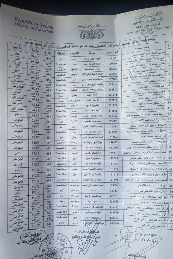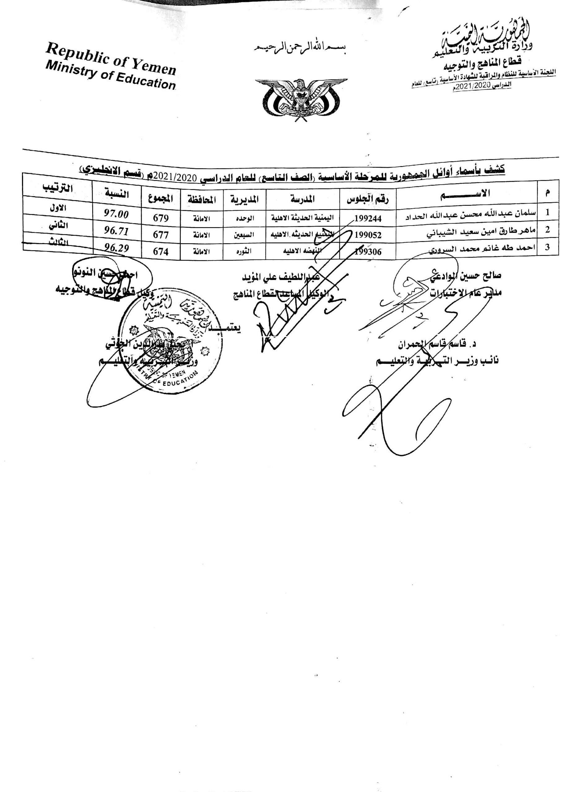 وأكد وزير التربية، إمكانية حصول طلاب الشهادة الأساسية على نتائجهم ابتداء من اليوم عبر الاتصال بالهاتف الثابت على الرقم “161” أو الاتصال وإرسال رقم الجلوس برسالة “sms” عبر شبكة اتصالات يمن موبايل إلى الرقم ذاته.