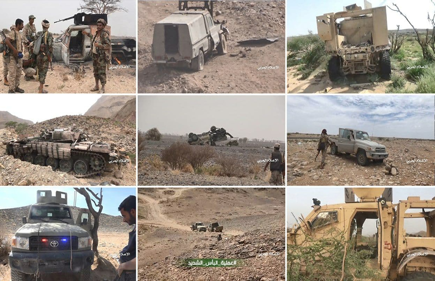 كما استعرض العميد سريع جزءاً مما وثقّته عدسة الإعلام الحربي، لاسيما الخسائر البشرية.. مؤكدا أن القوات المسلحة تمكّنت -خلال عملية البأس الشديد- من تحرير ما يقارب 1600 كم مربع، ونجحت في استعادة ما كان في هذه المساحة من معسكرات، ومقرات للقوات المسلحة، بعد أن كان قد استولى عليها الغزاة وأذنابهم من العملاء والخونة.