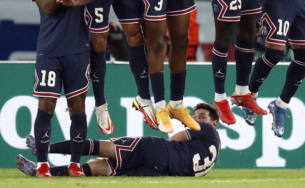 ووثقت عدسات الكاميرا ميسي ممددا أرضا خلف حائط الصد في ضربة حرة لمانشستر سيتي بالشوط الثاني من المباراة، وهو الأمر الذي جعل الجميع يتساءل كيف لميسي بأن يظهر بهذا الشكل.
