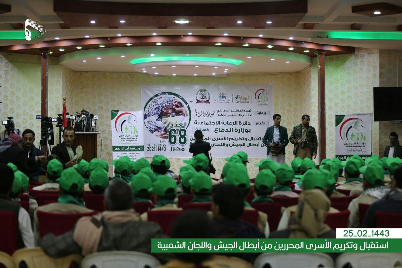 وفي الحفل أكد عضو المجلس السياسي الأعلى محمد علي الحوثي أن صمود الأسرى في سجون العدوان يعتبرا انتصارا للشعب لأنهم حملوا المسئولية في سبيل الله.. داعيا وزارة الدفاع إلى أن تمنح رتبا عسكرية للأسرى لأنهم قدموا أروع صور الثبات والصمود وقهروا السجان.