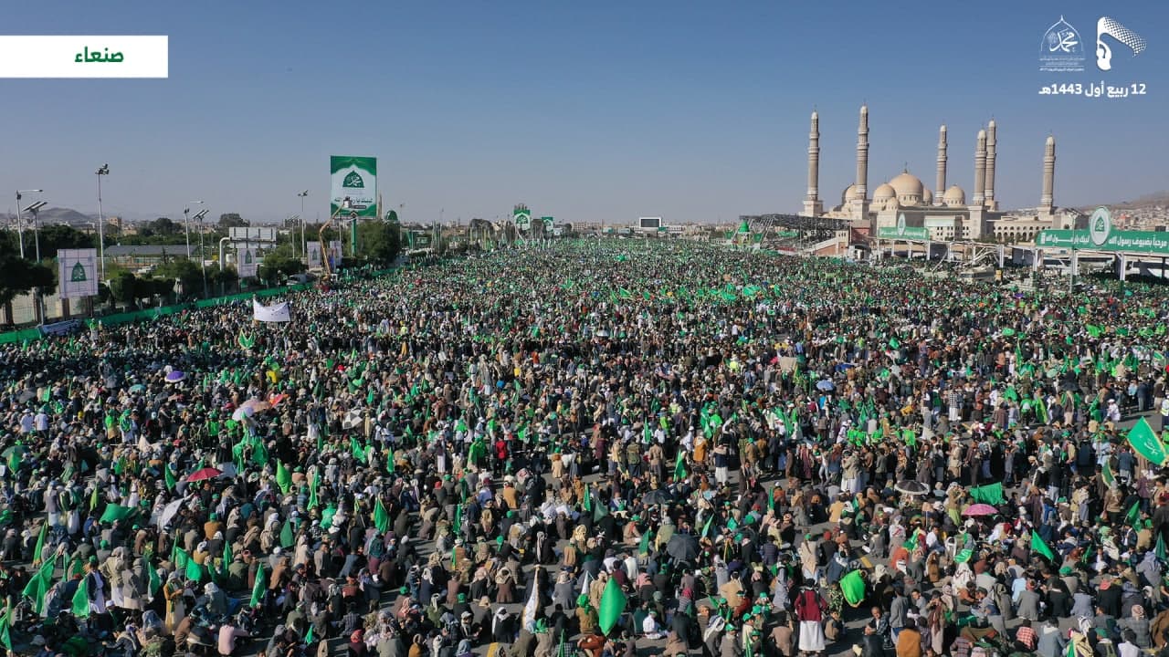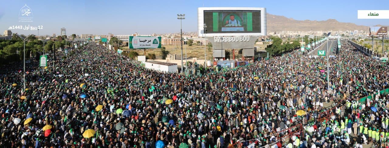 وزمجرت الحشود المليونية، بالصلاة والسلام على رسول الله، والترحيب والتهليل بمولده، والبراءة من أعداء الأمة، انطلاقا من تعاليم الدين الإسلامي، والهوية الإيمانية للشعب اليمني الحر والأصيل.