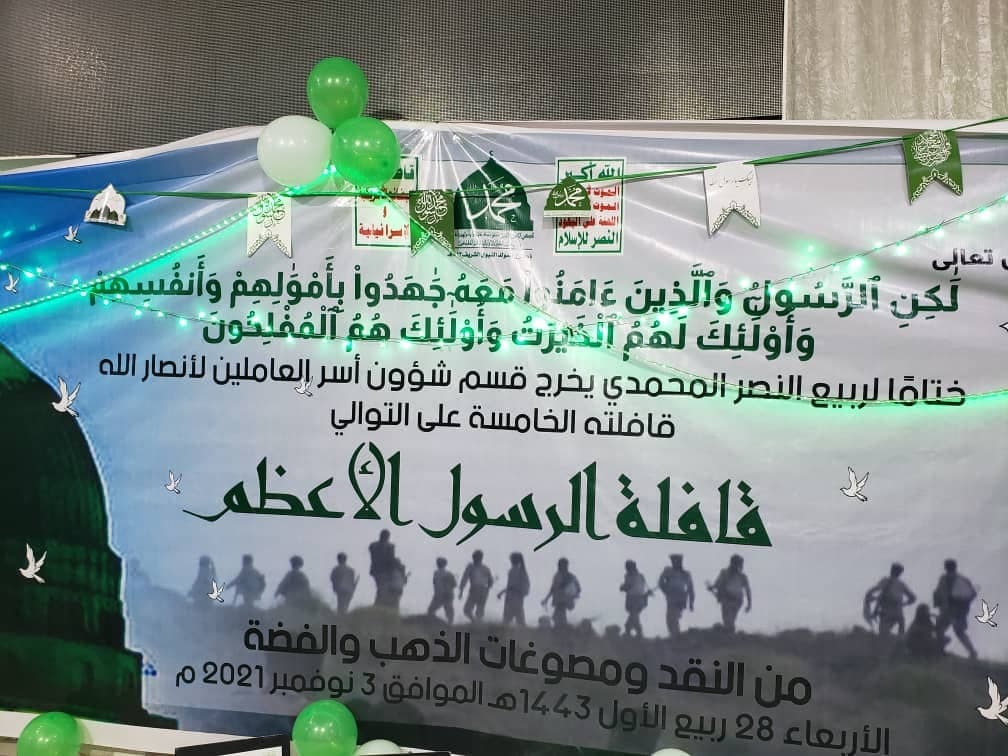 سير قسم شؤون أسر العاملين بأمانة العاصمة القافلة الخامسة على التوالي من العملة النقدية والمصوغات من الذهب والفضة ابتهاجًا واحتفاءً بربيع النصر المحمدي على صاحبها وآله أفضل الصلاة وأتم التسليم تحت شعار (قافلة الرسول الأعظم) في ختام الفعاليات والإحتفالات بالمناسبة الشريفة.