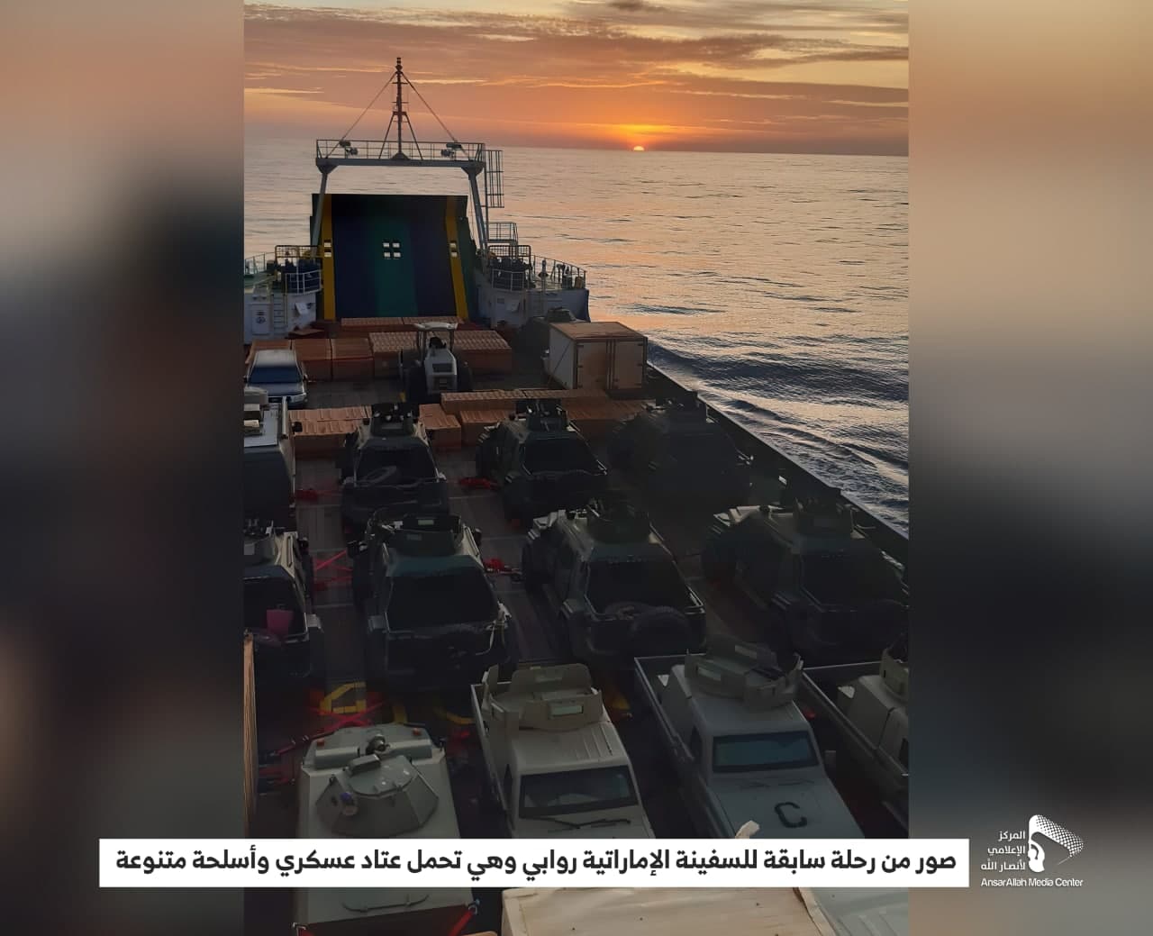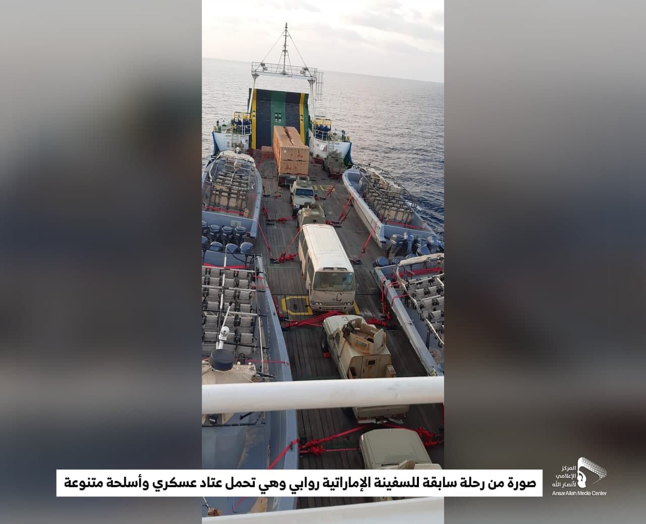 فضيحة جديدة للتحالف.. صنعاء توزع صورا لعمليات نقل أسلحة ومعدات عبر السفينة الإماراتية “روابي
